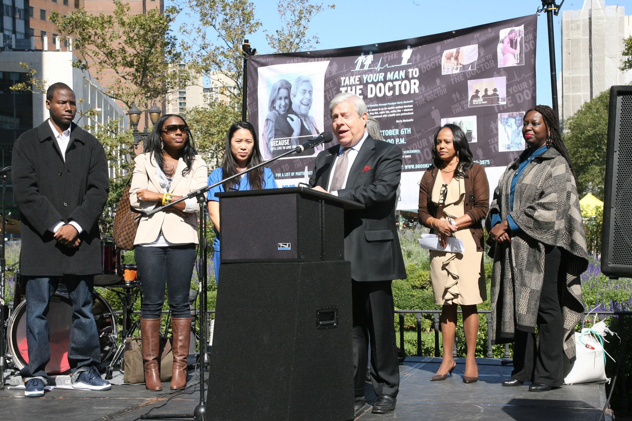 Brooklyn Borough President Marty Markowitz and Deputy Borough President Yvonne Graham kicked off his tenth annual “Take Your Man to the Doctor” campaign—a call to action for men of all ages, ethnicities, and economic levels to regularly visit a doctor, and for the women and men who love them to help make it happen. Participating Brooklyn hospitals, clinics and healthcare professionals offered free flu shots, HIV testing, exercise demonstrations, health screenings for asthma, blood pressure, cholesterol, diabetes, glucose, glaucoma and other conditions, and made important health information available in and around Borough Hall Plaza.
