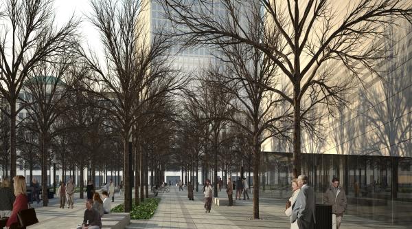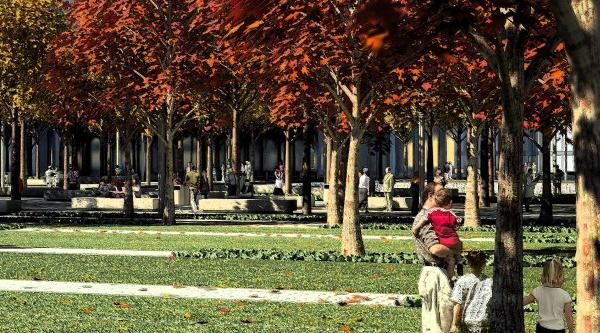 The Memorial Plaza’s irrigation, storm water and pest management systems will conserve energy, water and other resources. Rainwater will be collected in storage tanks below the plaza surface. The harvested water will be used for the irrigation.