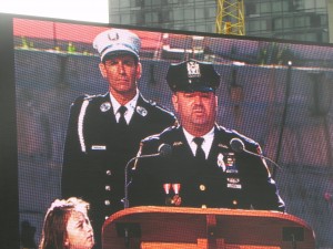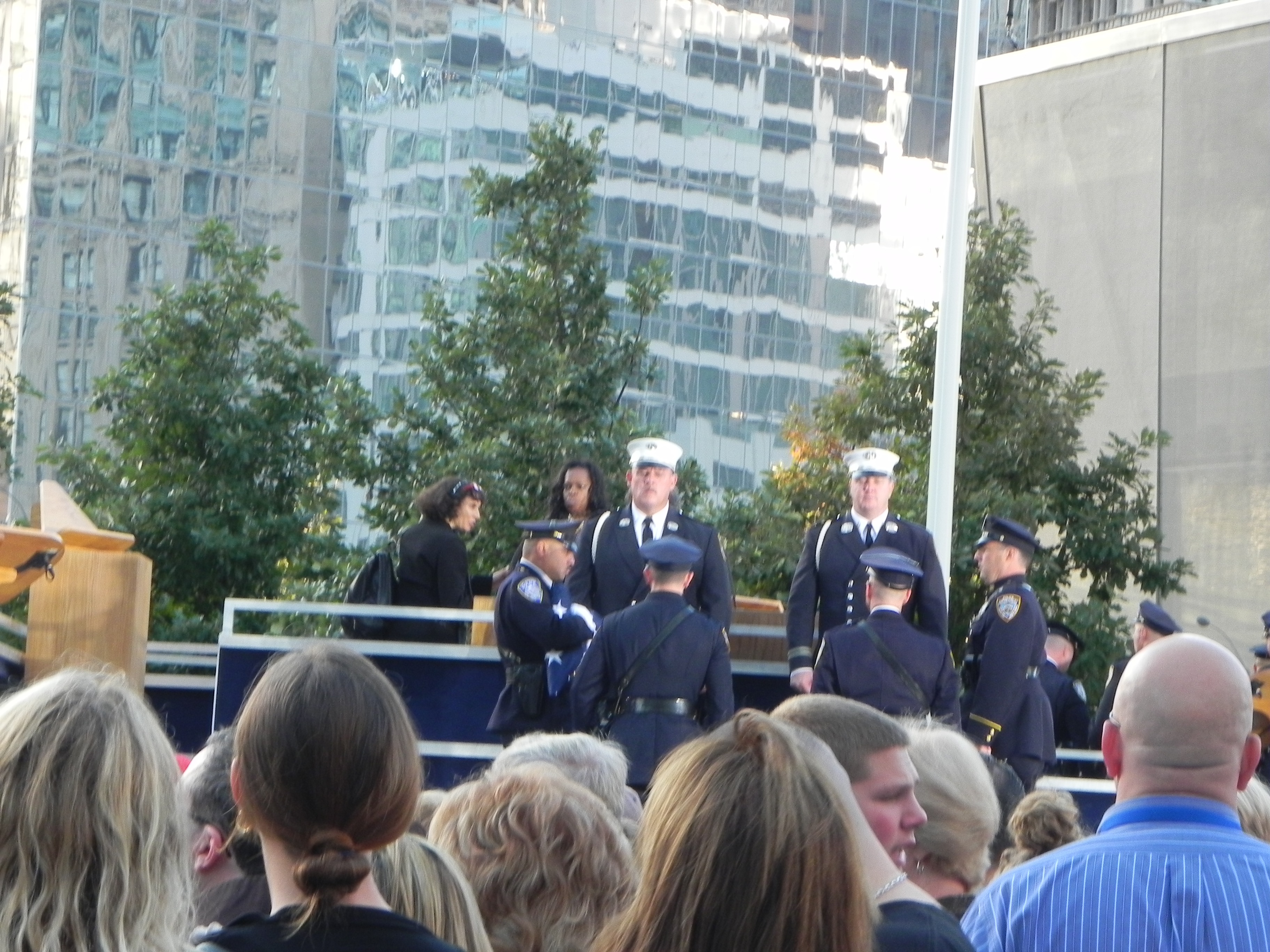 As we waited for the ceremony to begin, we were able to speak with family members of victims. Marina Benedetto-Paulie was getting ready to turn 18 and on that horrific morning she kissed her mom goodbye and she walked 3 blocks or so to school and her mother made her way up to her office in the South Tower at AON Insurance Corporation. That was the last time that she would see her mother. Mark Morrell, a stock trader, shared a sense of closeness with brother George and worked very close to the tower where his brother was working at Cantor Fitzgerald. Mark saw the horrifying events unfold from his office window but never saw his brother again and felt helpless to come to his aid. There are many stories as tragic as these two.