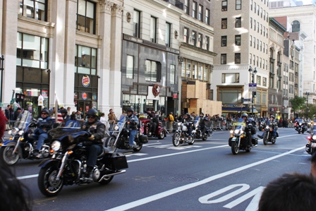 Harleys roared down the street with patriotic American flags blowing in the breeze. Policemen stood guard solemnly and saluted their fellow countrymen.