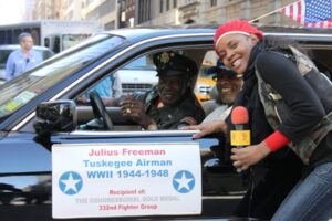 World War II 1944-1948 Congressional Gold Medal recipient, Julius Freeman, drove through the procession and was well received by the throng of parade watchers.