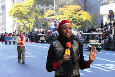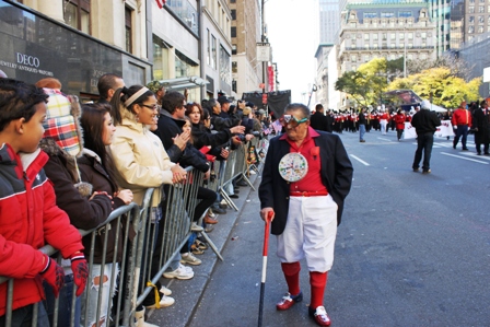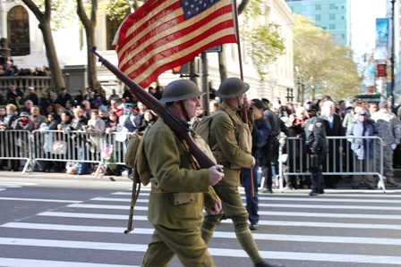 As the parade proceeded down towards the New York Public Library, there were vets of all ages marching in unison and bonding for a common cause. Cameras were flashing and hands were clapping. Many cultures came together on this great day with a sense of commonality. An older gentleman dressed from head to toe in red, white and blue including his cane, walked down the street attracting a laugh, a whisper and a curious look from those onlookers whose eyes met his gaze.