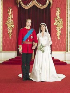 As Kate emerged from her car waving to the masses, she was a vision of grace and beauty with a smile that would warm the hearts of many an onlooker. The dress that was the speculation of fashion followers across the globe was no longer a secret. The gown has been described as retro, traditional and breathtaking. Respected designer, Carolina Herrera, described it as classic and regal and a bit sensational. The designer of choice was Sarah Burton of the House of Alexander McQueen. The gown was made of ivory and white silk gazar with hand-embroidered English and French Chantilly lace and 58 organza-covered buttons up the back. The neckline was shaped like a V, long sleeves complimented the dress made of lace and her train that was draped at the top was close to nine feet long. Her perfect figure was accentuated by the shape of the dress and the narrow bodice. Beneath the veil, Kate wore her hair down with soft curls at the ends. In keeping with the tradition of ‘something borrowed’, Kate wore a Cartier tiara, a crown of diamonds befitting royalty. This tiara was loaned to her by her future grandmother-in-law, Queen Elizabeth II.