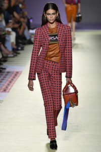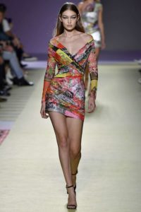 On September 21, 2018, the VERSACE Spring 2019 Fashion show attracted a very stylish crowd at Milan Fashion Week Spring 2019. The high-profile audience eagerly anticipated what Donatella Versace had in store for them this season. Donatella, as customary, did not disappoint. Headlining the runway presentation was one of âTHEâ chic supermodels of all time, Shalom Harlow. She was a true pro, ruling the runway and loving every minute of the spotlight. Modeling the VERSACE signature looks, current-day favorites Gigi and Bella Hadid along with Kaia Gerber, Kendall Jenner and Emily Ratajkowski were also part of this all-star cast and looking stunning as they strutted their stuff. Defining colors and prints were elegant made for the sophisticated woman with a desire to stand out amongst her friends and peers. Shorter dresses were body-hugging, accentuating the hourglass silhouette while the transparent printed tulle dresses layered over more conservative shapes were in sharp contrast. The VERSACE emblem could be seen on a silky tee paired with a menswear-inspired suit in a bright orange and blue pattern. Toned down ruffles and plenty of leather in bold, emblazoned tones, were instinctively intuitive of the brand.