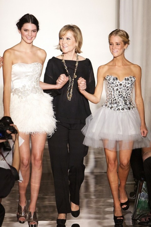 Amongst a flurry of celebrities, a new Spring 2012 collection was unveiled with some of the most beautiful and intricate beading, sequins, feathers and metallics in gowns and dresses that looked fit for royalty. Debuting on the runway was the young and enchanting Kendall Jenner. Spotted at the show were Kathy Lee Gifford and Hoda Kotb, two esteemed television personalities. Miss Teen USA, Danielle Doty, was sitting in the front row. Sherri Hill has been good luck for Miss America pageant winners with her personally designed glamorous gowns. Cameras snapped in all directions as soon as Kim and Kourtney Kardashian entered the building flashing their magnetic smiles.