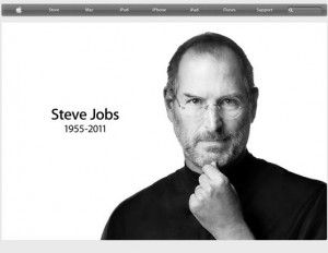 The homepage of Apple’s website today switched to a full-page image of Steve Jobs with the text ‘Steve Jobs 1955-2011’.