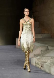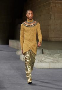 One of Chanelâs brand ambassadors, talented musical artist Pharrell Williams, walked the runway covered from head to toe in gold. Not only were there famous faces on the runway, but, the front row had its share of famous faces as well. Front and center were Julianne Moore, Penélope Cruz, Blake Lively, Margot Robbie, Janelle Monae and Christy Turlington Burns. Never missing a single Chanel show and looking stunning in long black velvet and gold was Anna Wintour.