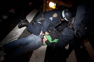 Although the ‘Occupy Wall Street’ movement is peacefully protesting for their cause, the situation turned more forceful as protestors built barricades to keep the police away and police became more aggressive and were even seen throwing a protestor over a fence.