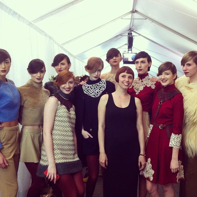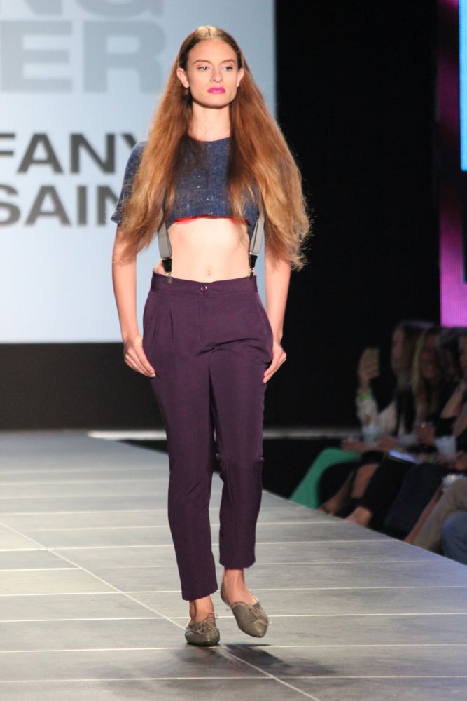 Angela Bacskocky, a 33 year-old designer from Richmond, Virginia, let her rock and roll style guide her through the process. She gave us the ‘Puritan Collection’ which had a sort of androgynous feel to it. Heavy wools with leather accents, the influential menswear suit, appliqués at the neckline and wrists and deep hues of blue and wine, accented this Fall 2014 collection. This season the crop top is earning high acclaim and Angela built the trend into this particular collection. One of the great designers of all time influencing Angela was Alexander McQueen.