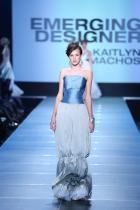 The fashions of Kaitlyn Machos fulfill romantic dreams in soft fabrics of silk taffeta, chiffon, satin and organza. Although the collection appears soft and subtle with glistening jewels in various areas of her gowns, the inspiration is dark and yet expressive. As Kaitlyn puts it, “The collection, ‘Exposed’, is inspired by shattered glass and the desire to bare my emotional vulnerability.” She thought of the bad things and the people that she has lost involving shattered glass and thus produced a collection that appealed to our hearts. Ralph Rucci had a strong influence on her creations and you can follow some of the similarities. Kaitlyn is 22 years old and lives in Lexington, South Carolina.