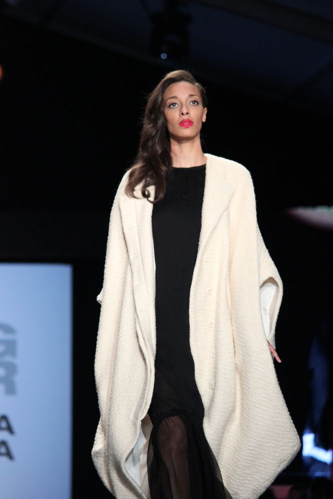 A resident of New York City, Deanna Ansara is 24 years old. Her concept of design is interesting and thought provoking. Mixing a modern yet timeless style gives her that passion to produce sophisticated clothing. Her pieces are centered around clean lines and draping is one of her favorite means of self-expression. The greatest measure of her success is moving the idea from the paper before her to the model who wears it down the runway in front of the bright lights. This Fall 2014 collection conveyed mystery and intrigue to her audience.