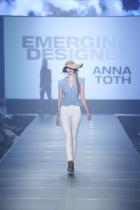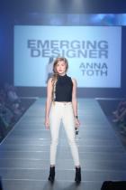 Absolutely thrilled to be chosen as the #1 designer by both the judges and the audience, Anna Toth gave us a collection that has versatility in every degree and pleasing pizzazz in every piece. The clothing can be dressed up or dressed down to match the occasion. Anna is 33 years old and lives in Asheville, North Carolina. She enjoys working with denim and organic cotton which allows for ease of movement and gives the wearer a strong sense of style. She is influenced by artisan makers throughout the world. Seeing that surprised and euphoric expression on Toth’s face and the smile which extended from ear to ear, was one of the highlights of that evening.