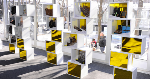 Although the winter temperatures were brisk and chilly, heat lamps provided a bit of warmth in the courtyard areas. Couches were available out in the courtyard along with a large screen set in an ice sculpture providing playbacks of current fashion shows.