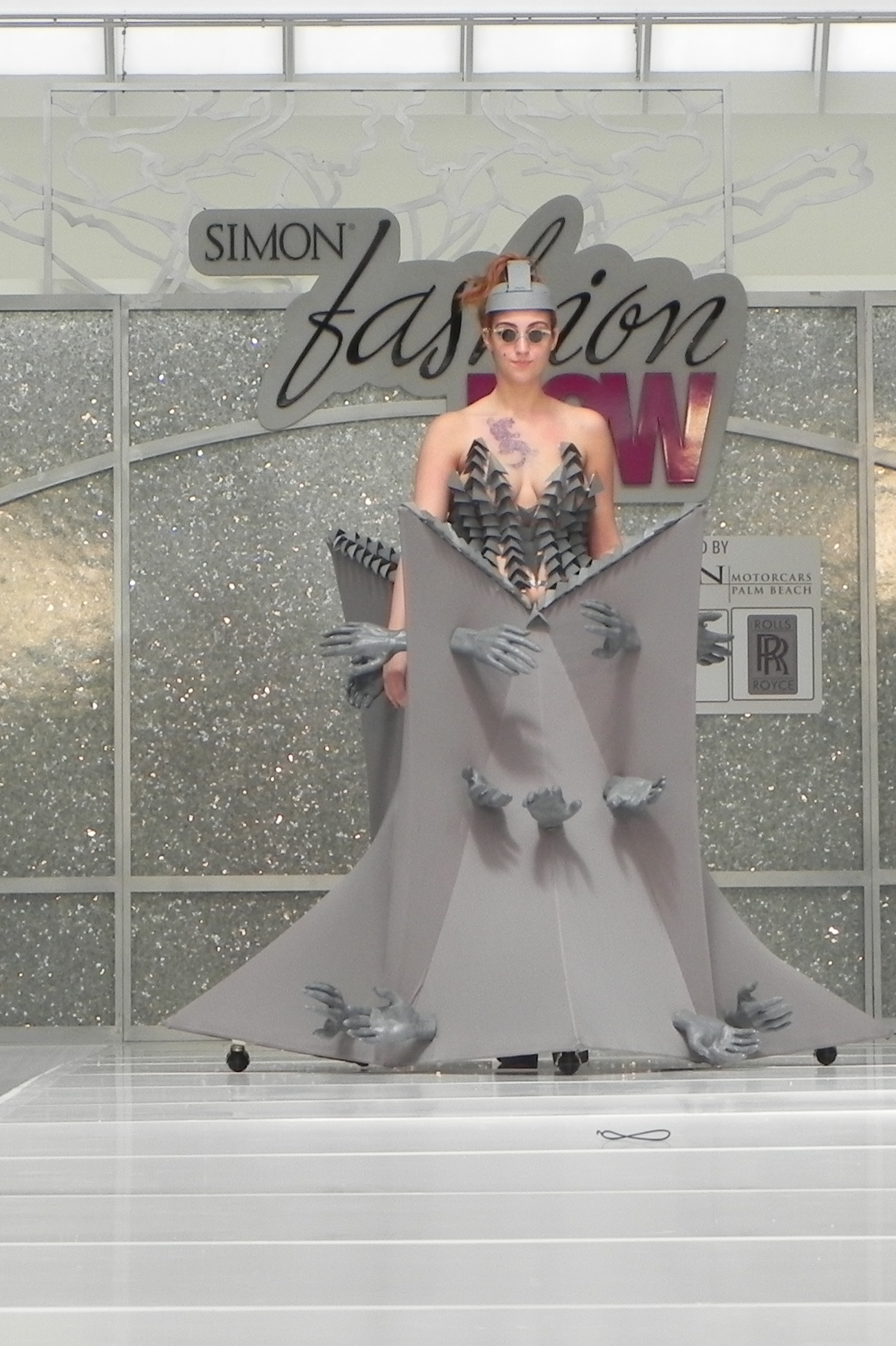It all began with a furious design war competition called the ‘Gaga Fashion Challenge’. The original top 10 designs were brought to the stage to compete for the ultimate Lady Gaga look and a chance to win a $500 Simon gift card. Judges included a former member of the all-girl band ‘Seduction’ and now host DJ on West Palm Beach radio station 93.9, Michelle Visage, dressed in black and creating quite her own style. Joanie Cox, Glamazon fashion blogger for City Link Magazine and editor of Boca Piquant, was the second judge and third judge was Boca’s own Brett Loewenstern, of American Idol Season 10 fame.