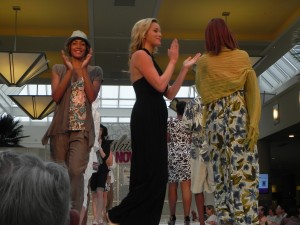 The competition led into a non-stop day of fashion shows from popular retailers such as Lilly Pulitzer, Tommy Bahama, Lucky Brand, White House/Black Market, Chico’s, Ann Taylor, Cache, Banana Republic, Guess, Francesca’s Collections (a newer merchant to the mall) and so many more. Accessories and shoes played a key role as well and stores that participated were Nine West, Steve Madden, Bag’n Baggage and a variety of others. The audience was whisked off to the beach with swimsuit fashions from Everything But Water.