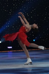 J. Mendel, a designer who got his start in Russia, then Paris and then on to the United States, gave us the sensuous, yet glamorous and extraordinary on the ice. His outfits were embellished with feathers and fur, pleats and lace, simple and silk, sequined and sexy. The rainbow of colors used were silvers, blues, red and blacks putting a stimulating spin on the ice. Sarah Hughes, 2002 Olympic Gold Medalist, was an agile princess on ice in a red strapless sheer knee-length dress.