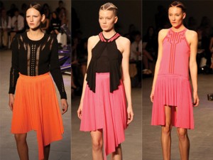 Hailing from Macedonia, Magdalena Velevska premiered her first collection at Rosemount Fashion Week in 2009. She is extremely creative and has developed her own fabrics. She is a designer of exploration. The colors of her most recent collection are bright and electric and pleats abound. Before venturing out on her own, she gained experience with established labels.