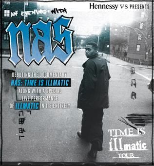 A by-product of the Tribeca Film Festival with nothing but rave reviews and high acclaim for the documentary, Nas will go on the road for a US tour with the documentary film NAS: TIME IS ILLMATIC where the film will screen and Nas will perform Illmatic from start to finish following the screening. The opening of this year’s Tribeca Film Festival kicked off with the premiere of the film and a concert and was a spectacular way to experience the film. It all begins in New York City on October 1st and then moves on to Rochester, New York on October 2nd and from there it becomes a whirlwind tour as thirteen cities are hit along the way, all in the month of October.
