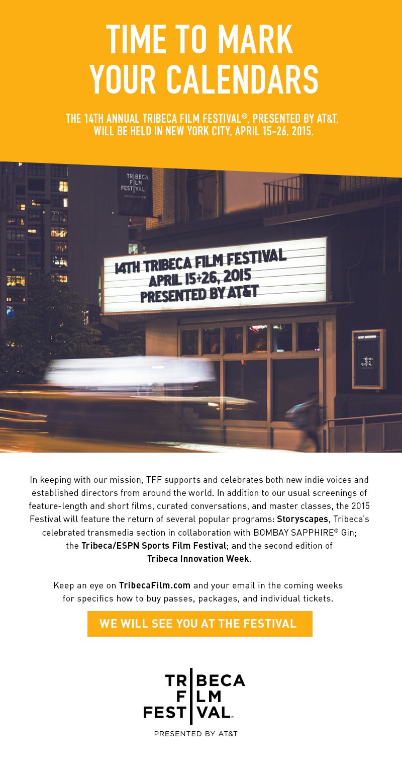 Although the month of August will soon be behind us, it is only just the start of the time required to prepare in order to get ready for Tribeca Film Festival 2015. The dates were recently announced so it is time to mark your calendars for April 15 – April 26, 2015.