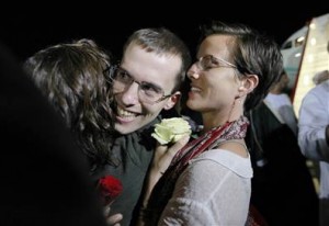 Josh Fattal and Shane Bauer were so thankful to be released and on their way to Oman. The third hiker and Bauer’s fiancee, Sarah Shourd, was freed last year on medical grounds. She was absolutely ecstatic to see him and they plan to be married soon. The families have expressed extreme gratitude for the release. All three hikers had been arrested in July 2009 when they strayed over an unmarked border between Iraqi Kurdistan and Iran.