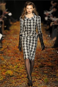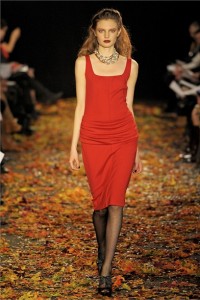 Suits are simply his specialty and one of the nicest of the collection was the black and white oversized houndstooth peplum jacket over the pencil skirt. Jersey dressing is a big fall favorite and solid colors and color blocking will be one of the hot trends of the season.