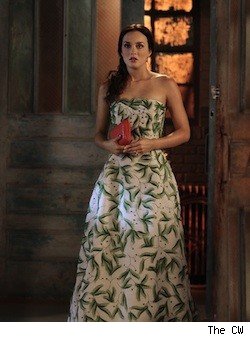 Penn Badgley, Ed Westwick and Chace Crawford made it a formal event dressed in suits and looking simply divine. Although Leighton Meester’s character, Blair, is sometimes aggressive and manipulative, Leighton looked striking and innocent in a Balmain white handkerchief hem strapless dress fastened at the waist and bodice with a gold brooch. Her long hair was straightened with feathered bangs.