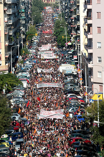 Close to 10,000 people could be seen marching through the Greek capital of Athens. This was by far the largest protest in years.