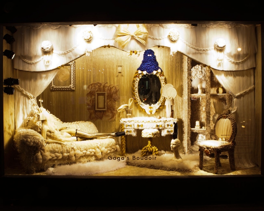 “Gaga Goes Wild” with Barney’s Lady Gaga Workshop taking over the entire first floor of the department store. Emblematic items will entertain. Purchase some of these unique gifts to support the artist’s brand new cause, anti-bullying ‘Born This Way’ Foundation. Step into the all wig hair boudoir in a lounge of luxury, a one of a kind experience.
