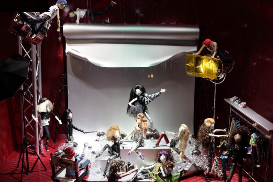 Galeries Lafayette screams mod and mauvelous with tiny rock stars touched up by the painter’s palette. And then the video begins and it is music mayhem.