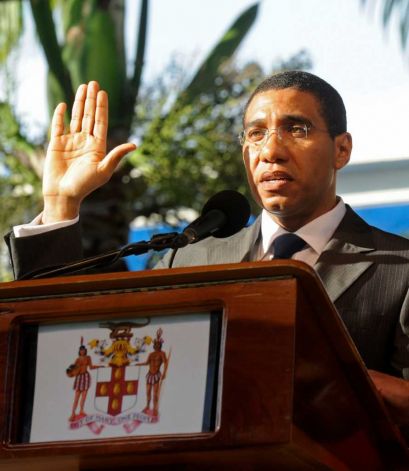 KINGSTON, Jamaica (AP) — Youthful lawmaker Andrew Holness was sworn in Sunday as Jamaica’s new prime minister, ushering in a government he said would heal political divisions, root out corruption, reduce debt and bureaucracy and attract foreign investment to reduce poverty.