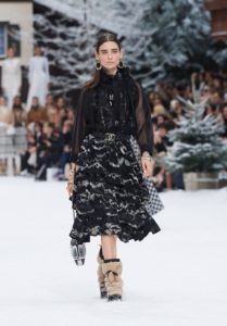 Sadly, one of the greatest fashion productions, the Chanel Fall/Winter 2019 fashion show, took place only two weeks after the famed designer passed away. Virginie Viard, successor to Lagerfeld as Creative Designer of Chanel, had worked closely with the late designer in his last months, weeks, days to develop a collection sure to leave a lasting impact on Chanel clientele. The theme was well thought out, giving those who attended the show a very chilly taste of a village in the Swiss Alps, complete with snowy fir trees, mountains and log cabins with chimneys puffing actual smoke. Not only were those watching the show heavy with emotion, but, models fondly remembered a man whose passion for life and style was magical. They had tears in their eyes and a somber smile on their faces. The show opened with a moment of silence, honoring the man who made Chanel. Guests were given illustrations of Karl Lagerfeld walking with Coco Chanel and underneath the picture was the statement, “The beat goes on.” Sophisticated tweeds, signature suits with wide-leg trousers and single button blazers as well as courageous coral hues all made for a wonderful tribute to the late designer, the man of the hour. Actress and model Penelope Cruz walked the runway along with Chanel favorite, Cara DeLevingne.