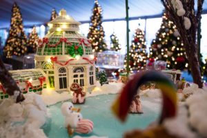 On Friday, December 9, 2016, the New York Botanical Garden held their 18th annual Winter Wonderland Gala Ball with a bevy of guests appearing as if they stepped out of a Disney fairy tale. The gala began with a cocktail hour under the enchanting dome of the Palms Of The World Gallery. During the holiday season, the New York Botanical Garden always takes the opportunity to feature a very naturalistic model train set that spans a large expanse of the area and chugs past miniature versions of New York’s famous historic landmarks such as the New York Public Library. The train set became the object of conversation as the attendees sipped and socialized that first hour. The winter chill took on a warm glow as dinner was served in the Enid A. Haupt Conservatory. Wreaths glistened from the ceiling and the dance floor gave off the illusion of a sheet of ice, all the while mesmerizing the guests with such an imaginative atmosphere. Snow covered trees even filled the venue as part of the Winter Wonderland.