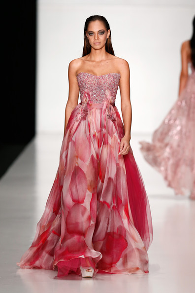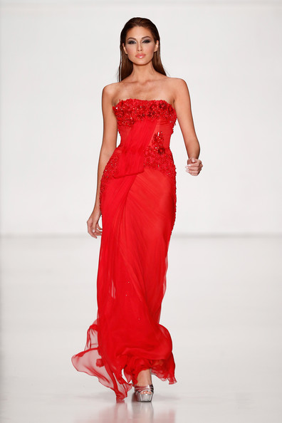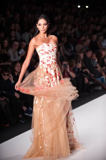 Ruffles, sequins, tulle, flowing tafetta, strapless silk, plunging v-necklines, suggestive side slits were all part of the masterful collection of Tony Ward. A white and silver gown illuminated the runway with a magnetic shine. A sea of blue and a bevy of black blessed the catwalk as well.