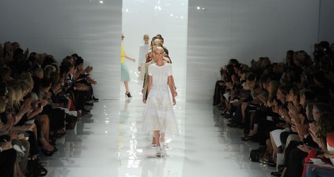 A model walks the runway at the Derek Lam Spring 2012 fashion show during Mercedes-Benz Fashion Week at The Stage at Lincoln Center on September 11, 2011 in New York City.