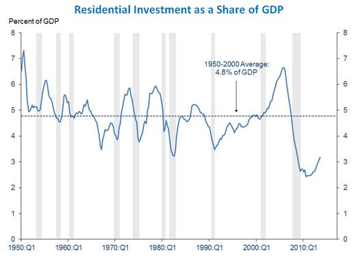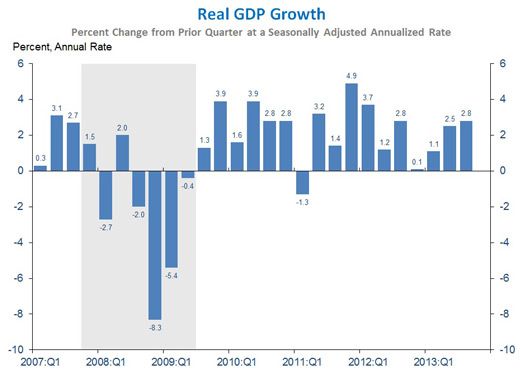 The private job sector had the greatest influence over the GDP growth. Export growth has returned in the Eurozone and is beginning to strengthen in other places also. Residential investment has posted double-digit annualized gains for five consecutive quarters. Housing investment plummeted during the financial crisis and remained weak early in the recovery, but has been growing strongly since the end of 2011. Despite the increase in mortgage rates this year, there is a significant upside potential in this sector, as housing investment remains well below its historic average as a share of the economy, while the pace of new housing starts, at about 900,000 homes annually, remains well below the pace implied by demographics.