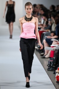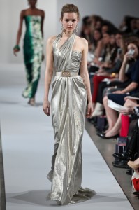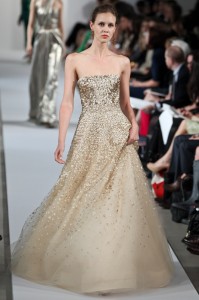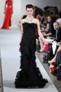 Sexy silhouettes and opulent cocktail dresses rounded out the collection. They hugged the hour-glass figures of the glowing models. Gowns of tulle could easily make a woman turn into a fairytale princess. There is nothing more elegant than an Oscar de la Renta couture gown. A woman is simply buried with beauty as she slips into the mystical dress.