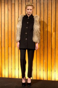 Fur is important to Misha to get that powerful message out to the masses. A black coat trimmed in contrasting cranberry red fur is the answer to bundling up on those cold winter days. A vest of fur over a long black blouse with diamond buttons makes its own statement while a black long fur vest is striking against the backdrop of a pure purple silky long skirt.