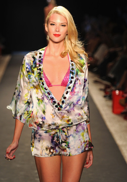 For the playful of heart and seductive of soul, Beach Bunny 2012 Cruise Collection is definitely right up your alley. With silk and lace, feathers and satin and embellishment, this sexy swimwear will take you from the beach to the bedroom in the blink of an eye. Accessorized in beads, pearls and diamonds, the models had big smiles that could set the world on fire as they graced the catwalk at Mercedes-Benz Fashion Week Swim 2012.