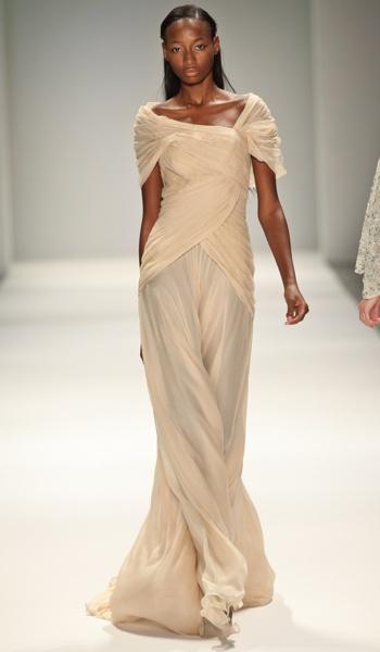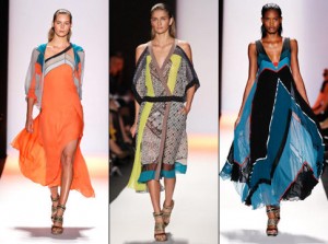 BCBG gave us slits and mixtures of colors on low cut ankle length dresses. The look was simply divine and characteristic of the great lines that Max Azria usually gives his followers.