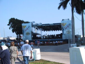 Sunfest was founded in 1982 and is considered to be Florida’s largest waterfront music and art festival. Each year the crowds get larger with numbers in the 270,000 range. The festival is produced by Sunfest of Palm Beach County, Inc. which is a private 501(c)3 nonprofit organization. This year, 2011, marks the 29th year the event will take place with 21 members on the board of directors, 25 committees and over 2500 volunteers. There are over 100 sponsors including Florida Power and Light, Pepsi, Captain Morgan, Verizon, Bank of America, Coors Light, local radio and tv stations and more including local company contributors. The event is partially sponsored by the State of Florida, Department of State, Division of Cultural Affairs and the Florida Arts Council.