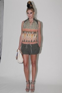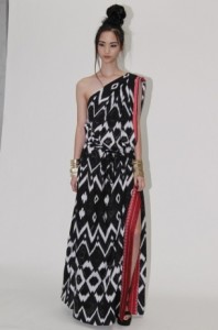 Speaking of lines, Gwen also unveiled her Spring 2012 Collection at Mercedes-Benz Spring 2012 Fashion Week in September in New York City. It was loaded with geometric patterns, bright colors and outfits that made a bold statement. Playful jumpsuits, short sets and gaucho pants were in demand while lengths varied from the one-shouldered maxi to the short flared skirt worn with a leather jacket. Big handbags put the finishing touches on the outfits.