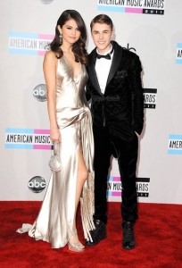 The animal print still holds on for another season with Mary J. Blige wearing a one-sleeved floor length leopard print wrap dress with dangling silver earrings to match. As paternity rumors fly, Selena Gomez and Justin Bieber were modern day Bogey and Bacall, he in a velvet smoking jacket and shiny black high-top sneakers and she in a most elegant ivory satin gown revealing a low neckline with a seductive slit up the leg and carrying a tiny purse to match the dress.