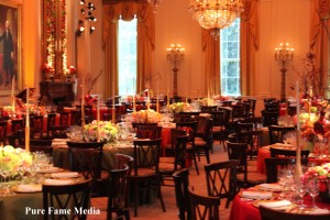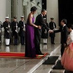 To cap off the day, there was a State Dinner attended by such honorable guests which included the Vice President, Deputy Secretary of State, U.S. Representatives, Press Secretary, mayors, Chiefs of Staff and more distinguished guests. Much preparation went into making sure the evening was a success. Singer Janelle Monae performed for the guests later in the evening. First Lady Michelle Obama wore a stunning one-shouldered deep purple gown designed by Doo-Ri Chung, a South Korean designer residing in the United States.