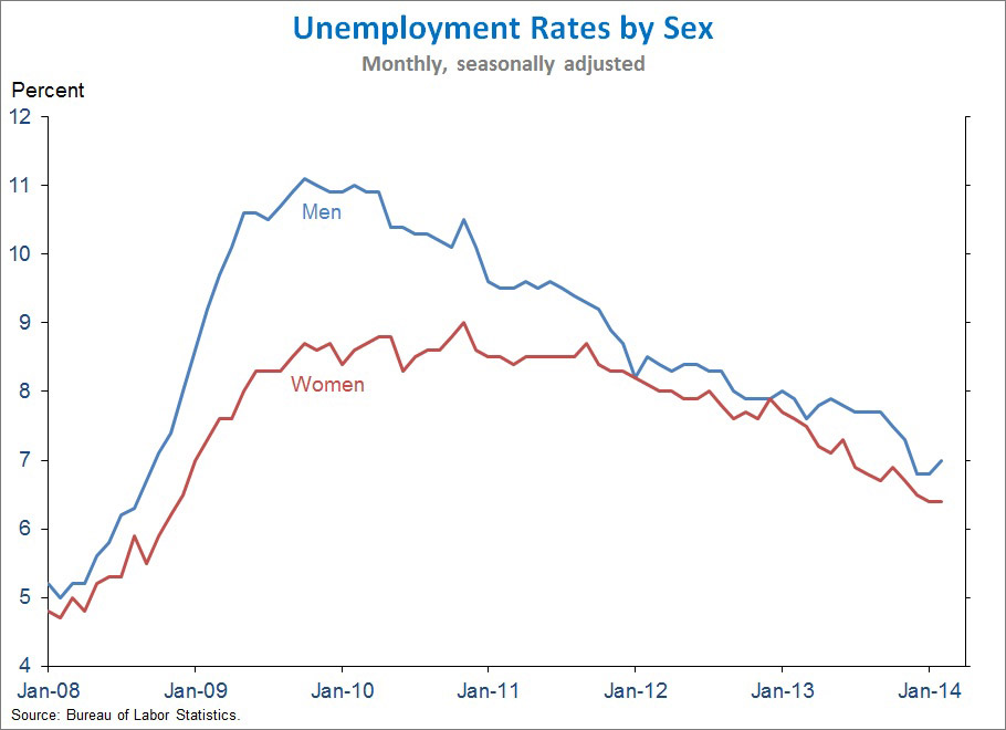 4. In recognition of Women’s History Month, it is important to note that the female unemployment rate has been steady at 6.4% in each of the last two months which is also the lowest since November 2008. The lack of an immediate recovery in female unemployment is likely due, in part, to the lower starting-off point and job cuts in state and local governments over the period which has disproportionately affected teachers. Since the end of 2011, the female unemployment rate has fallen 1.9 percentage points. The President has been working to look for ways to build on the progress and create more and better economic opportunities for women and doing so by combating discrimination, ensuring equal pay for equal work and promoting workplace flexibility.
