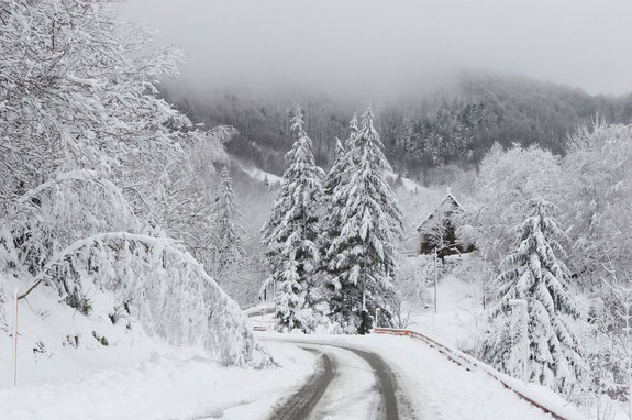 Outside the pure white snow is falling as the snowman and the squirrel converse,