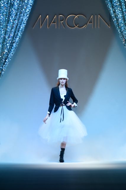 On July 10th, a brand that Germany is very proud of, Marc Cain, entertained an audience that almost seemed like they stepped off the Red Carpet. The company lives by the motto of setting the bar for highest standards of design, quality, materials, the latest production techniques and perfect fit. You can only imagine the setting as the theme was “MAGIC CIRCUS” making us drift into the land of Spring/Summer 2015. It all took place at the Erika Hess Ice Stadium. Five performance artists opened the show with an acrobatic performance on an oversized mannequin.