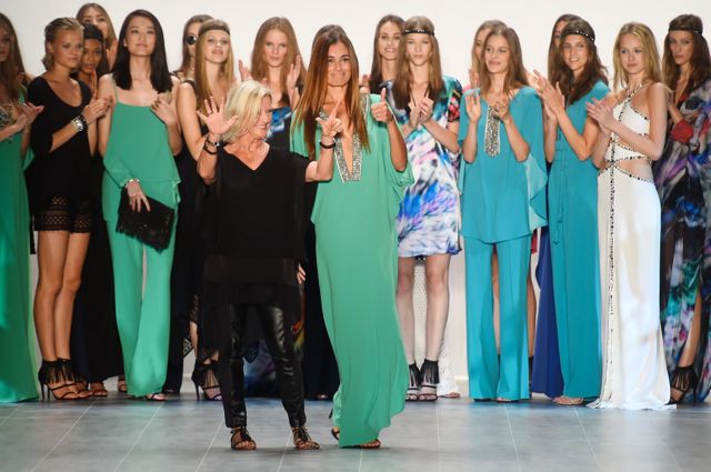 We saw a diversity of eras wrapped into one with a full-length white crocheted dress, all hand-crafted, and a creamy casual silk jumpsuit which quickly became a favorite of Bar Refaeli. On the catwalk, VIP model Jana Ina Zarrella was radiant in a Brazilian-inspired emerald-green kaftan with stunningly detailed beaded embroidery. The 70’s hippie looks included the use of ultra-soft goatskin suede for flowing, feminine styles such as shirt tops, an overall and a fringed cape.