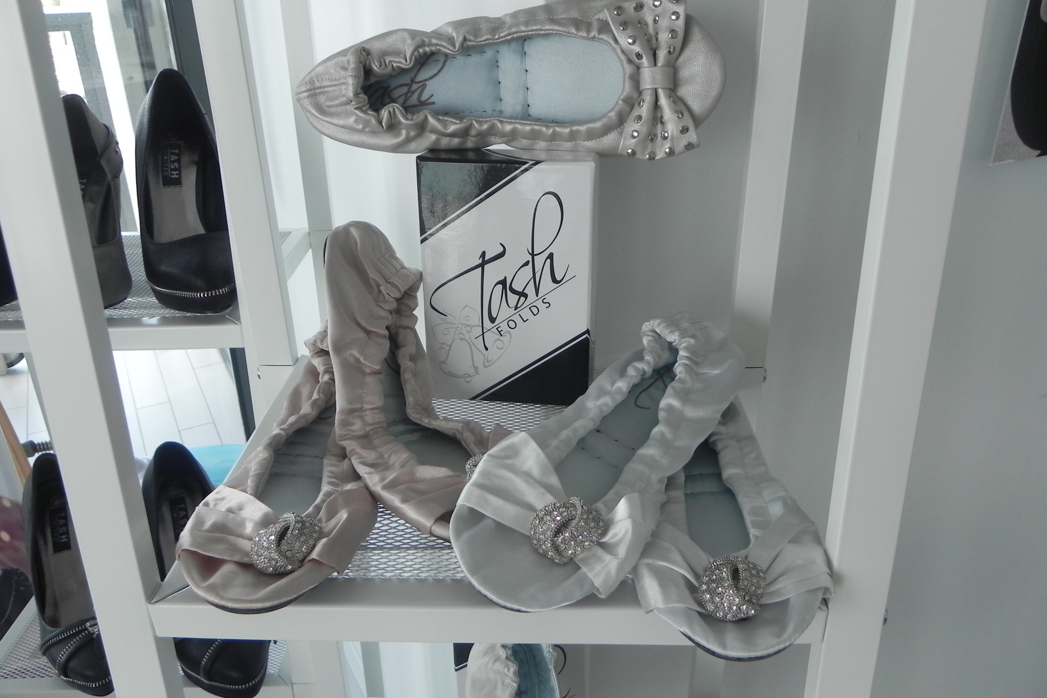 Thus ‘Tash Folds’ were launched. They are the foldable flat shoes that you can slip into your purse or slip on your feet any time, any place. Each comes with their own unique packaging and the soles are made of a hard and durable rubber made to withstand any condition. Canvas and leather are the fabrics used and the inner lining is satin for extra added comfort. There are a wide range of colors and textures from shimmery blush to patent sienna brown.