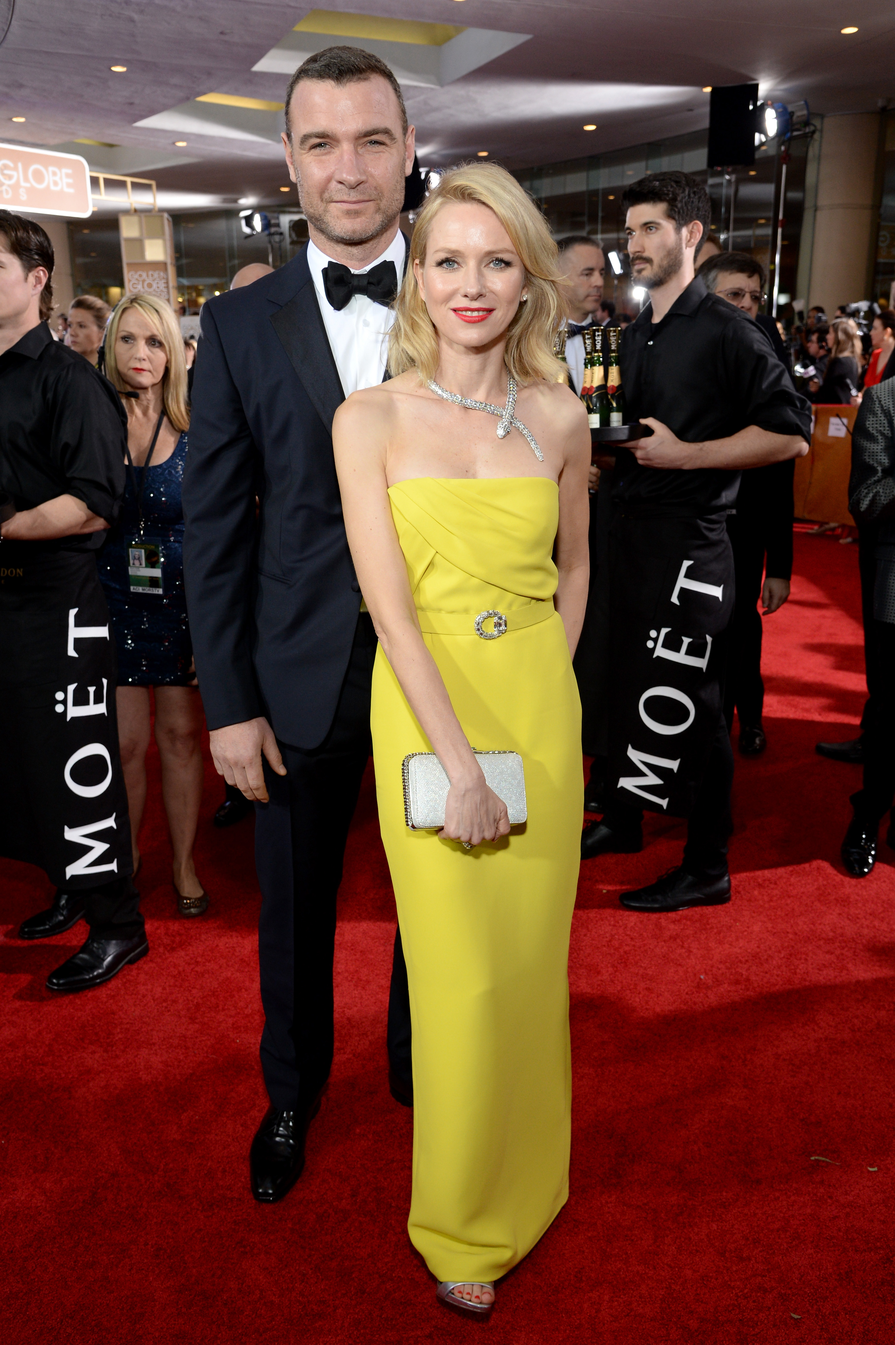 Photo Credit: Michael Kovac for Getty Images, Liev Schreiber and Naomi Watts “Toast for a Cause” with Moët & Chandon Impérial minis at the 72nd Annual Golden Globe Awards