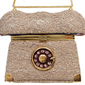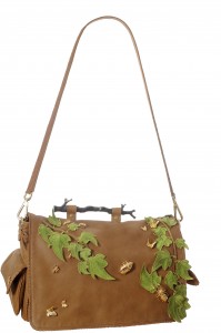 The Spring/Summer 2012 Collection is labeled ‘Lucid Thoughts’. The inspiration is the powerful human rationality, imagination and creativity. Imagine a bag in the shape of a foot or a hen or a walnut or an apple. The phone is the link to the communication world and now it comes in the shape of a purse covered in lacework. Perhaps you have that inner devil as you throw the skeleton purse with lifelike teeth over your shoulder. Colors of purple and greens are most engaging for the season. The Unicorn bag is lined with raw silk. The small wheel bag is made of metallic tinted certified Python skin with handmade embroidery.